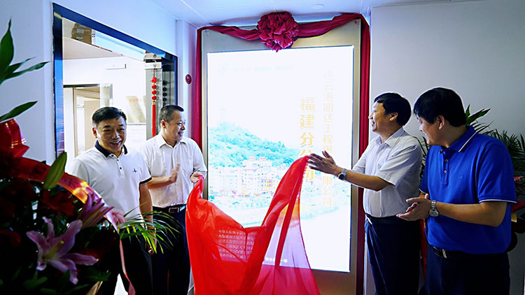 公司李慕董事長、李跟總經(jīng)理、賈良豪常務副總經(jīng)理、安凱勝副總經(jīng)理兼福建分公司經(jīng)理,共同為福建分公司揭牌。